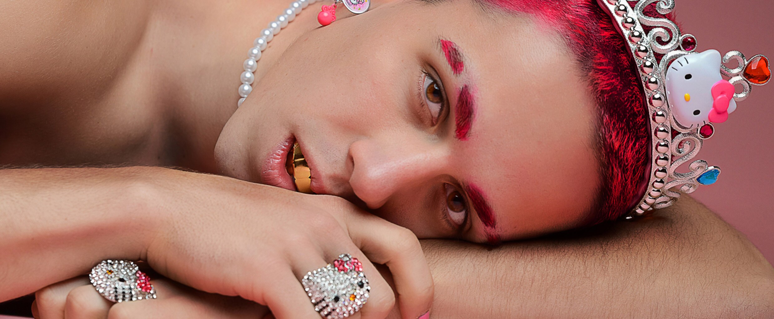 Jakob Kasimir – aka rapper-slash-performance-artist, Candy Ken – emerges from the warehouses of the Berlin art scene, Hello Kitty stickers brandished across his face and spitting bars about the big issues, from Candy Crush to Barbie Dolls and basic bitches. Earlier this year he dropped the Youtube hit, ‘RiFF RAFF iS MA DADDY’, which is a fair summation of his overall look: RiFF RAFF cross-bred with Brooke Candy, some pink hair, mascara and just about every item you might find in a five-year-old’s playbox. It’s a heady mix, so we thought it was time to get the low-down from the man forging one of the most distinctive, and polarizing, personas on the web…